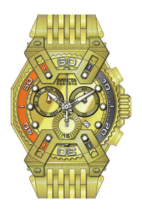 INVICTA Reserve Men 48.0mm Stainless Steel + Aluminum Gold + Orange + Grey + Silver Gold dial Z60 Quartz , Band Material: Stainless Steel, Band Tone: Gold, Band Size [mm]: 33.3, Band Length [mm]: 210, Buckle Type: Fold over safety , Crown Type : Screw Down, Case Material : Stainless Steel,Aluminum, Case Tone : Gold,Orange,Grey,Silver, Case Size (mm) : 48, Case Back : Solid, Material of Hands : Metal, Color of Hands : Silver,Orange,Luminous,Grey, Crystal Type : Flame Fusion, Bezel Material : Stainless Steel,Aluminum, Dial Material : Metal, Dial Color : Gold, Dial Pattern : High Polish Finish .Purchasing these parts and having a non-authorized repair center open your watch voids all manufacturing warranties. Invicta cannot guarantee the quality standards of an altered timepiece, the standard 3-year limited warranty on Invicta timepieces shall be invalid if the timepiece is serviced at any time by an unauthorized repair center. This includes battery replacements, which must be done at an Invicta authorized repair center in order to maintain the eligibility of the warranty. Please follow the link below to learn more about Invicta's warranty.https://cdn.invictawatch.com/www/files/invicta-warranty-2018.pdf