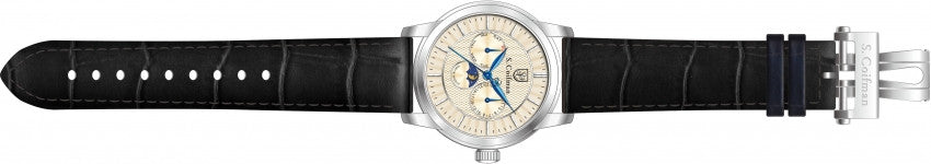 Band Material: Leather, Band Tone: Black, Band Size: 22mm, Band Length: 220 mm, Buckle Type: Butterfly , Clasp Type: Butterfly
