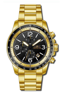 INVICTA Specialty Men 48mm Stainless Steel Gold Black dial VD57 Quartz , Band Material: Stainless Steel, Band Tone: Gold, Band Size [mm]: 24, Band Length [mm]: 195, Buckle Type: Fold over safety , Crown Type : Push, Case Material : Stainless Steel, Case Tone : Gold, Case Size (mm) : 48, Case Back : Exhibition, Material of Hands : Metal, Color of Hands : Black,Gold, Crystal Type : Flame Fusion, Bezel Material : Stainless Steel, Dial Material : Metal, Dial Color : Black, Dial Pattern : Sun-ray Finish .Purchasing these parts and having a non-authorized repair center open your watch voids all manufacturing warranties. Invicta cannot guarantee the quality standards of an altered timepiece, the standard 3-year limited warranty on Invicta timepieces shall be invalid if the timepiece is serviced at any time by an unauthorized repair center. This includes battery replacements, which must be done at an Invicta authorized repair center in order to maintain the eligibility of the warranty. Please follow the link below to learn more about Invicta's warranty.https://cdn.invictawatch.com/www/files/invicta-warranty-2018.pdf