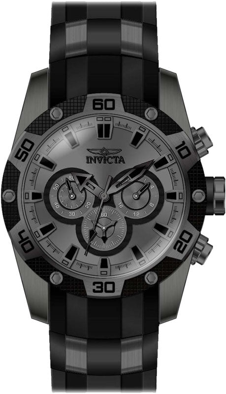 INVICTA Speedway Men 48mm Stainless Steel Gunmetal Gunmetal dial VD54 Quartz , Band Material: Stainless Steel,Silicone, Band Tone: Black,Gunmetal, Band Size [mm]: 26, Band Length [mm]: 205, Buckle Type: Buckle , Crown Type : Push, Case Material : Stainless Steel, Case Tone : Gunmetal, Case Size (mm) : 48, Case Back : Solid, Material of Hands : Metal, Color of Hands : Black,Gunmetal, Crystal Type : Flame Fusion, Bezel Material : Stainless Steel, Dial Material : Metal, Dial Color : Gunmetal, Dial Pattern : Sun-ray Finish .Purchasing these parts and having a non-authorized repair center open your watch voids all manufacturing warranties. Invicta cannot guarantee the quality standards of an altered timepiece, the standard 3-year limited warranty on Invicta timepieces shall be invalid if the timepiece is serviced at any time by an unauthorized repair center. This includes battery replacements, which must be done at an Invicta authorized repair center in order to maintain the eligibility of the warranty. Please follow the link below to learn more about Invicta's warranty.https://cdn.invictawatch.com/www/files/invicta-warranty-2018.pdf