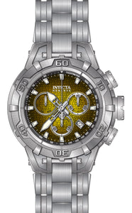 Band Material: Stainless Steel, Band Tone: Steel, Band Width: 27.5MM, Band Length: 210MM, Crown Type: Push, Case Material: Stainless Steel, Case Tone: Steel, Case Size [mm]: 54.00, Case Back: Solid screwed, Material of Hands: Metal, Color of Hands: Silver,Luminous, Crystal Type: Mineral, Bezel Material: Stainless Steel, Dial Material: Metal, Dial Color: Black,Yellow, Dial Pattern: Gradient Pattern .Purchasing these parts and having a non-authorized repair center open your watch voids all manufacturing warranties. Invicta cannot guarantee the quality standards of an altered timepiece, the standard 3-year limited warranty on Invicta timepieces shall be invalid if the timepiece is serviced at any time by an unauthorized repair center. This includes battery replacements, which must be done at an Invicta authorized repair center in order to maintain the eligibility of the warranty. Please follow the link below to learn more about Invicta's warranty.https://cdn.invictawatch.com/www/files/invicta-warranty-2018.pdf