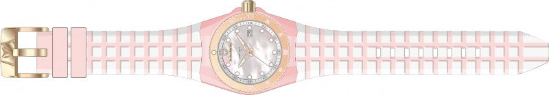 Band Material: Silicone, Band Tone: White, Pink, Band Size: 24mm, Band Length: 200mm, Clasp Type: Regular, Clasp Tone: Rose Gold Please note that bands do not ship with spring bars or T bars. If you need these parts, please add them to your cart with the corresponding part sku.