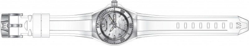 Band Material: Silicone, Band Tone: White, Band Size: 26mm, Band Length: 195mm, Clasp Type: Buckle, Clasp Tone: Stainless Steel Please note that bands do not ship with spring bars or T bars. If you need these parts, please add them to your cart with the corresponding part sku.