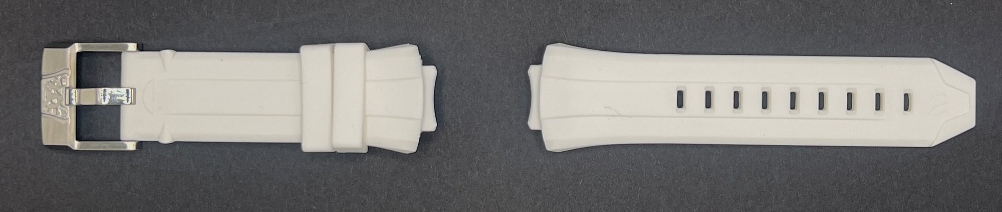 Band Material: Silicone, Band Tone: Black, Band Size: 29mm, Band Length: 210mm, Clasp Type: Buckle, Clasp Tone: Stainless Steel Please note that bands do not ship with spring bars or T bars. If you need these parts, please add them to your cart with the corresponding part sku.
