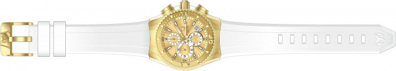 Band Material: Silicone, Band Tone: White, Band Size: 26mm, Band Length: 180mm, Clasp Type: Regular, Clasp Tone: Gold Please note that bands do not ship with spring bars or T bars. If you need these parts, please add them to your cart with the corresponding part sku.
