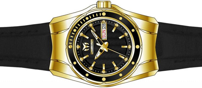 , Crown Type Screw Down, Case Material Stainless Steel, Case Tone Gold, Case Size (mm) 36, Case Back Solid, Material of Hands Metal, Color of Hands Gold, Crystal Type Flame Fusion, Bezel Material Stainless Steel, Dial Material Metal, Dial Color Black, Dial Pattern Textured