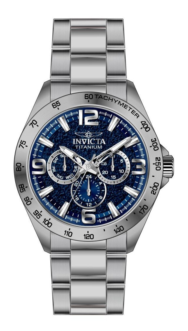 Band Material: Titanium, Band Tone: Titanium, Band Width: 22MM, Band Length: 181MM, Crown Type: Push, Case Material: Titanium, Case Tone: Titanium, Case Size [mm]: 43, Case Back: Solid, Material of Hands: Brass, Color of Hands: Silver,Luminous, Crystal Type: Mineral, Bezel Material: None, Dial Material: Brass, Dial Color: Blue, Dial Pattern: Embossed pattern .Purchasing these parts and having a non-authorized repair center open your watch voids all manufacturing warranties. Invicta cannot guarantee the quality standards of an altered timepiece, the standard 3-year limited warranty on Invicta timepieces shall be invalid if the timepiece is serviced at any time by an unauthorized repair center. This includes battery replacements, which must be done at an Invicta authorized repair center in order to maintain the eligibility of the warranty. Please follow the link below to learn more about Invicta's warranty.https://cdn.invictawatch.com/www/files/invicta-warranty-2018.pdf