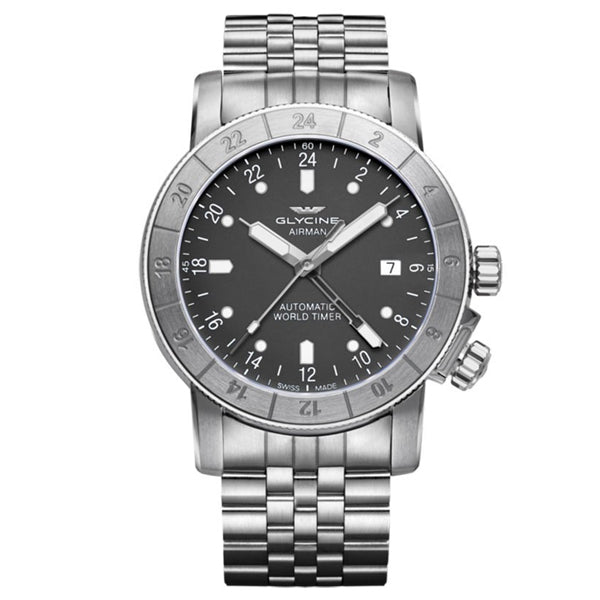 Band for Glycine Airman GL0065, Band Material: Stainless Steel, Band Color: Steel, Band Width: 22, Band Length: 200, Buckle Type: Butterfly