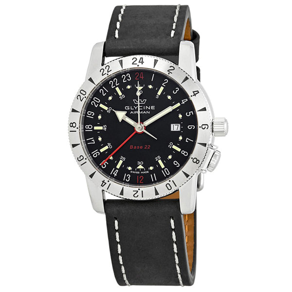 Band for Glycine Airman GL0207, Band Material: Leather Band Color: Black Band Width (mm): 22 Band Length (mm): 200 Buckle Type: Regular