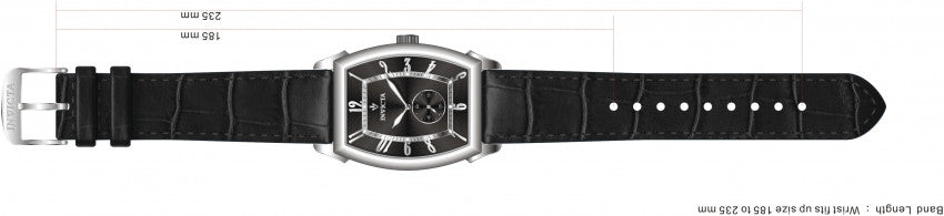 Band For Men Invicta Vintage 12207, Band Material Leather, Band Color Black, Band Width 22 MM, Band Length 235 MM, Buckle Type Regular, Clasp Type Regular. Please note that bands do not ship with spring bars or T bars. If you need these parts, please add them to your cart with the corresponding part sku.