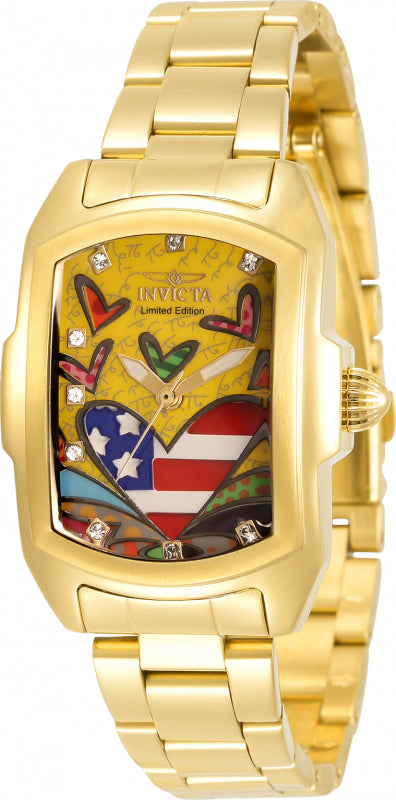 Band Material: Stainless Steel, Band Tone: Gold, Band Width: 16MM, Band Length: 172.5MM, Crown Type: Push, Case Material: Stainless Steel, Case Tone: Gold, Case Size [mm]: 29, Color of Hands: Gold, Crystal Type: Flame Fusion, Bezel Material: Stainless Steel, Dial Material: Metal, Dial Color: Yellow, Grey, Purple, Pink, Green, Red, Blue, Orange .Purchasing these parts and having a non-authorized repair center open your watch voids all manufacturing warranties. Invicta cannot guarantee the quality standards of an altered timepiece, the standard 3-year limited warranty on Invicta timepieces shall be invalid if the timepiece is serviced at any time by an unauthorized repair center. This includes battery replacements, which must be done at an Invicta authorized repair center in order to maintain the eligibility of the warranty. Please follow the link below to learn more about Invicta's warranty.https://cdn.invictawatch.com/www/files/invicta-warranty-2018.pdf