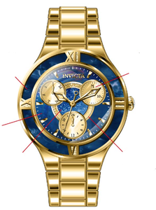 INVICTA Angel Lady 36mm Stainless Steel + Resin Gold Blue+Gold dial VH68 Quartz , Band Material: Stainless Steel, Band Tone: Gold, Band Size [mm]: 18, Band Length [mm]: 175, Buckle Type: Fold over push button , Crown Type : Push, Case Material : Stainless Steel,Resin, Case Tone : Gold, Case Size (mm) : 36, Case Back : Solid, Material of Hands : Metal, Color of Hands : Gold, Crystal Type : Flame Fusion, Bezel Material : Stainless Steel, Dial Material : Mother of Pearl, Dial Color : Blue,Gold .Purchasing these parts and having a non-authorized repair center open your watch voids all manufacturing warranties. Invicta cannot guarantee the quality standards of an altered timepiece, the standard 3-year limited warranty on Invicta timepieces shall be invalid if the timepiece is serviced at any time by an unauthorized repair center. This includes battery replacements, which must be done at an Invicta authorized repair center in order to maintain the eligibility of the warranty. Please follow the link below to learn more about Invicta's warranty.https://cdn.invictawatch.com/www/files/invicta-warranty-2018.pdf