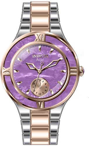 INVICTA Angel Lady 36mm Stainless Steel + Mother of Pearl Silver Rose Gold+Purple dial VH60 Quartz , Band Material: Stainless Steel, Band Tone: Steel,Rose Gold, Band Size [mm]: 18, Band Length [mm]: 175, Buckle Type: Fold over push button , Crown Type : Push, Case Material : Stainless Steel,Mother of Pearl, Case Tone : Silver, Case Size (mm) : 36, Case Back : Solid, Material of Hands : Metal, Color of Hands : Rose Gold, Crystal Type : Flame Fusion, Bezel Material : Stainless Steel,Mother of Pearl, Dial Material : Abalone, Dial Color : Rose Gold,Purple .Purchasing these parts and having a non-authorized repair center open your watch voids all manufacturing warranties. Invicta cannot guarantee the quality standards of an altered timepiece, the standard 3-year limited warranty on Invicta timepieces shall be invalid if the timepiece is serviced at any time by an unauthorized repair center. This includes battery replacements, which must be done at an Invicta authorized repair center in order to maintain the eligibility of the warranty. Please follow the link below to learn more about Invicta's warranty.https://cdn.invictawatch.com/www/files/invicta-warranty-2018.pdf