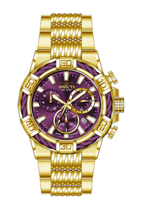 INVICTA Bolt Men 51mm Stainless Steel Gold Purple dial Z60 Quartz , Band Material: Stainless Steel, Band Tone: Gold, Band Size [mm]: 30, Band Length [mm]: 190, Buckle Type: Fold over safety , Crown Type : Push, Case Material : Stainless Steel, Case Tone : Gold, Case Size (mm) : 51, Case Back : Solid, Material of Hands : Metal, Color of Hands : Gold, Crystal Type : Flame Fusion, Bezel Material : Stainless Steel,Cable, Dial Material : Metal, Dial Color : Purple, Dial Pattern : Sun-ray Finish .Purchasing these parts and having a non-authorized repair center open your watch voids all manufacturing warranties. Invicta cannot guarantee the quality standards of an altered timepiece, the standard 3-year limited warranty on Invicta timepieces shall be invalid if the timepiece is serviced at any time by an unauthorized repair center. This includes battery replacements, which must be done at an Invicta authorized repair center in order to maintain the eligibility of the warranty. Please follow the link below to learn more about Invicta's warranty.https://cdn.invictawatch.com/www/files/invicta-warranty-2018.pdf