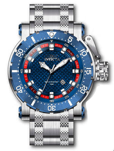 Band Material: Stainless Steel, Band Tone: Steel, Band Width: 26MM, Band Length: 198MM, Crown Type: Push, Case Material: Stainless Steel, Case Tone: Steel, Case Size [mm]: 52, Case Back: Solid, Material of Hands: Metal, Color of Hands: Silver, Crystal Type: Flame Fusion, Bezel Material: Stainless Steel, Dial Material: Metal, Dial Color: Blue, Dial Pattern: Textured Pattern .Purchasing these parts and having a non-authorized repair center open your watch voids all manufacturing warranties. Invicta cannot guarantee the quality standards of an altered timepiece, the standard 3-year limited warranty on Invicta timepieces shall be invalid if the timepiece is serviced at any time by an unauthorized repair center. This includes battery replacements, which must be done at an Invicta authorized repair center in order to maintain the eligibility of the warranty. Please follow the link below to learn more about Invicta's warranty.https://cdn.invictawatch.com/www/files/invicta-warranty-2018.pdf
