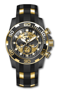 Band Material: Silicone, Stainless Steel, Band Tone: Black, Gold, Band Width: 26MM, Band Length: 210MM, Crown Type: Push, Case Material: Stainless Steel, Case Tone: Black, Case Size [mm]: 50, Color of Hands: Gold, White, Crystal Type: Flame Fusion, Bezel Material: Stainless Steel, Dial Material: Metal, Dial Color: Black, Gold .Purchasing these parts and having a non-authorized repair center open your watch voids all manufacturing warranties. Invicta cannot guarantee the quality standards of an altered timepiece, the standard 3-year limited warranty on Invicta timepieces shall be invalid if the timepiece is serviced at any time by an unauthorized repair center. This includes battery replacements, which must be done at an Invicta authorized repair center in order to maintain the eligibility of the warranty. Please follow the link below to learn more about Invicta's warranty.https://cdn.invictawatch.com/www/files/invicta-warranty-2018.pdf