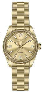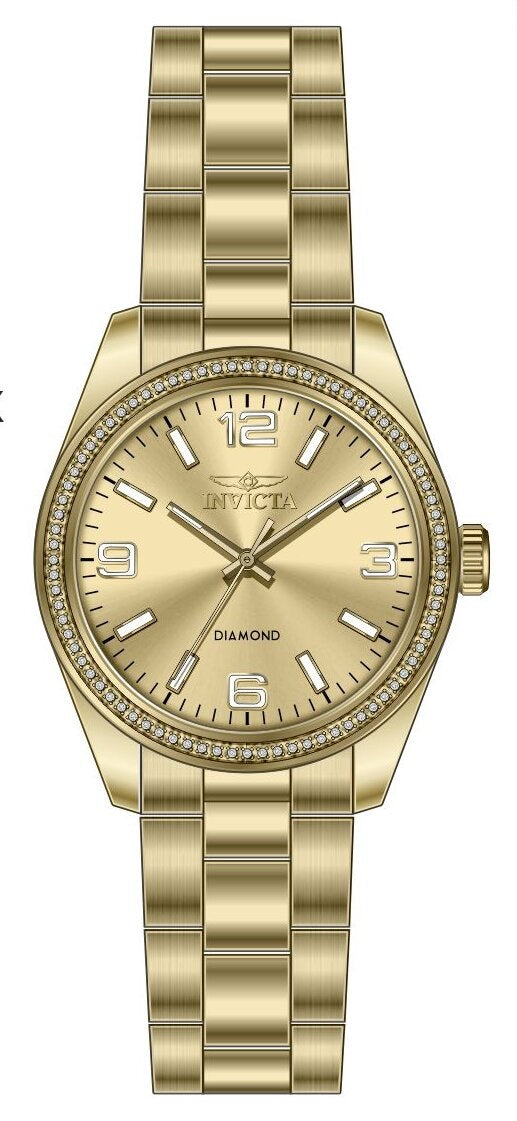 Band Material: Stainless Steel, Band Tone: Gold, Band Width: 18MM, Band Length: 160MM, Crown Type: Push, Case Material: Stainless Steel, Case Tone: Gold, Case Size [mm]: 36, Case Back: Solid, Material of Hands: Brass, Color of Hands: Gold,Luminous, Crystal Type: Mineral, Bezel Material: Stainless Steel,Diamond, Dial Material: Brass, Dial Color: Gold, Dial Pattern: Sun-ray Finish .Purchasing these parts and having a non-authorized repair center open your watch voids all manufacturing warranties. Invicta cannot guarantee the quality standards of an altered timepiece, the standard 3-year limited warranty on Invicta timepieces shall be invalid if the timepiece is serviced at any time by an unauthorized repair center. This includes battery replacements, which must be done at an Invicta authorized repair center in order to maintain the eligibility of the warranty. Please follow the link below to learn more about Invicta's warranty.https://cdn.invictawatch.com/www/files/invicta-warranty-2018.pdf