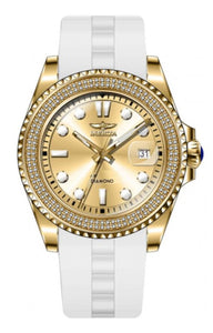 Band Material: Silicone, Band Tone: White, Band Width: 20MM, Band Length: 215MM, Crown Type: Screw Down, Case Material: Stainless Steel, Case Tone: Gold, Case Size [mm]: 38, Case Back: Solid, Material of Hands: Brass, Color of Hands: Gold,Luminous, Crystal Type: Mineral, Bezel Material: Stainless Steel,Diamond, Dial Material: Brass, Dial Color: Gold, Dial Pattern: Sun-ray Finish .Purchasing these parts and having a non-authorized repair center open your watch voids all manufacturing warranties. Invicta cannot guarantee the quality standards of an altered timepiece, the standard 3-year limited warranty on Invicta timepieces shall be invalid if the timepiece is serviced at any time by an unauthorized repair center. This includes battery replacements, which must be done at an Invicta authorized repair center in order to maintain the eligibility of the warranty. Please follow the link below to learn more about Invicta's warranty.https://cdn.invictawatch.com/www/files/invicta-warranty-2018.pdf