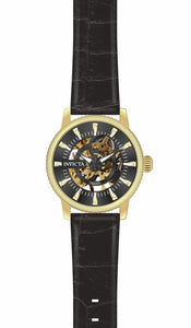 INVICTA Objet D Art Lady 36mm Stainless Steel Gold Black dial 2650 (Gilt) Automatic , Band Material: Leather, Band Tone: Black, Band Size [mm]: 18, Band Length [mm]: 195, Buckle Type: Buckle , Crown Type : Push, Case Material : Stainless Steel, Case Tone : Gold, Case Size (mm) : 36, Case Back : Exhibition, Material of Hands : Metal, Color of Hands : Black,Luminous, Crystal Type : Flame Fusion, Bezel Material : Stainless Steel, Dial Material : Metal, Dial Color : Black, Dial Pattern : None .Purchasing these parts and having a non-authorized repair center open your watch voids all manufacturing warranties. Invicta cannot guarantee the quality standards of an altered timepiece, the standard 3-year limited warranty on Invicta timepieces shall be invalid if the timepiece is serviced at any time by an unauthorized repair center. This includes battery replacements, which must be done at an Invicta authorized repair center in order to maintain the eligibility of the warranty. Please follow the link below to learn more about Invicta's warranty.https://cdn.invictawatch.com/www/files/invicta-warranty-2018.pdf
