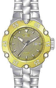 Band Material: Stainless Steel, Band Tone: Steel, Band Width: 30.00MM, Band Length: 210MM, Crown Type: Screw Down, Case Material: Stainless Steel, Case Tone: Gold,Steel, Case Size [mm]: 54.00, Case Back: Exhibition screwed, Material of Hands: Metal, Color of Hands: Silver,Luminous, Crystal Type: Flame Fusion, Bezel Material: Stainless Steel, Dial Material: Metal,Pave, Dial Color: Gold, Dial Pattern: High Polish Finish .Purchasing these parts and having a non-authorized repair center open your watch voids all manufacturing warranties. Invicta cannot guarantee the quality standards of an altered timepiece, the standard 3-year limited warranty on Invicta timepieces shall be invalid if the timepiece is serviced at any time by an unauthorized repair center. This includes battery replacements, which must be done at an Invicta authorized repair center in order to maintain the eligibility of the warranty. Please follow the link below to learn more about Invicta's warranty.https://cdn.invictawatch.com/www/files/invicta-warranty-2018.pdf