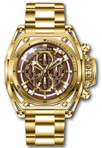 INVICTA S1 Rally Men 52mm Stainless Steel Gold Brown dial VD56 Quartz , Band Material: Stainless Steel, Band Tone: Gold, Band Size [mm]: 26, Band Length [mm]: 210, Buckle Type: Fold over safety , Crown Type : Push, Case Material : Stainless Steel, Case Tone : Gold, Case Size (mm) : 52, Case Back : Solid, Material of Hands : Metal, Color of Hands : Gold, Crystal Type : Flame Fusion, Bezel Material : Stainless Steel, Dial Material : Metal, Dial Color : Brown .Purchasing these parts and having a non-authorized repair center open your watch voids all manufacturing warranties. Invicta cannot guarantee the quality standards of an altered timepiece, the standard 3-year limited warranty on Invicta timepieces shall be invalid if the timepiece is serviced at any time by an unauthorized repair center. This includes battery replacements, which must be done at an Invicta authorized repair center in order to maintain the eligibility of the warranty. Please follow the link below to learn more about Invicta's warranty.https://cdn.invictawatch.com/www/files/invicta-warranty-2018.pdf