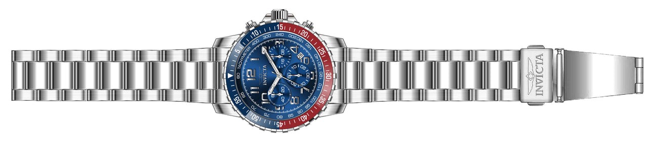 INVICTA Specialty Men 45.5mm Stainless Steel Silver Blue dial VD53 Quartz , Band Material: Stainless Steel, Band Tone: Steel, Band Size [mm]: 22, Band Length [mm]: 190, Buckle Type: Fold over push button , Crown Type : Push, Case Material : Stainless Steel, Case Tone : Silver, Case Size (mm) : 45.5, Case Back : Solid, Material of Hands : Metal, Color of Hands : White,Silver, Crystal Type : Flame Fusion, Bezel Material : Stainless Steel, Dial Material : Metal, Dial Color : Blue, Dial Pattern : Sun-ray Finish .Purchasing these parts and having a non-authorized repair center open your watch voids all manufacturing warranties. Invicta cannot guarantee the quality standards of an altered timepiece, the standard 3-year limited warranty on Invicta timepieces shall be invalid if the timepiece is serviced at any time by an unauthorized repair center. This includes battery replacements, which must be done at an Invicta authorized repair center in order to maintain the eligibility of the warranty. Please follow the link below to learn more about Invicta's warranty.https://cdn.invictawatch.com/www/files/invicta-warranty-2018.pdf