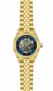 INVICTA Specialty Lady 36mm Stainless Steel Gold Blue dial P2650-SS Mechanical , Band Material: Stainless Steel, Band Tone: Gold, Band Size [mm]: 18, Band Length [mm]: 195, Buckle Type: Fold over , Crown Type : Push, Case Material : Stainless Steel, Case Tone : Gold, Case Size (mm) : 36, Case Back : Exhibition, Material of Hands : Metal, Color of Hands : Gold,Luminous, Crystal Type : Mineral, Bezel Material : Stainless Steel, Dial Material : Metal, Dial Color : Blue, Dial Pattern : Skeleton Design .Purchasing these parts and having a non-authorized repair center open your watch voids all manufacturing warranties. Invicta cannot guarantee the quality standards of an altered timepiece, the standard 3-year limited warranty on Invicta timepieces shall be invalid if the timepiece is serviced at any time by an unauthorized repair center. This includes battery replacements, which must be done at an Invicta authorized repair center in order to maintain the eligibility of the warranty. Please follow the link below to learn more about Invicta's warranty.https://cdn.invictawatch.com/www/files/invicta-warranty-2018.pdf