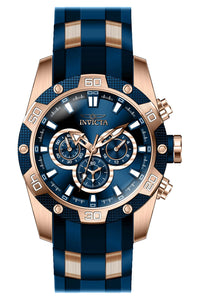 INVICTA Speedway Men 48mm Stainless Steel Rose Gold Blue dial VD54 Quartz , Band Material: Stainless Steel,Silicone, Band Tone: Rose Gold,Blue, Band Size [mm]: 26, Band Length [mm]: 205, Buckle Type: Buckle , Crown Type : Push, Case Material : Stainless Steel, Case Tone : Rose Gold, Case Size (mm) : 48, Case Back : Solid, Material of Hands : Metal, Color of Hands : White,Rose Gold, Crystal Type : Flame Fusion, Bezel Material : Stainless Steel, Dial Material : Metal, Dial Color : Blue, Dial Pattern : Sun-ray Finish .Purchasing these parts and having a non-authorized repair center open your watch voids all manufacturing warranties. Invicta cannot guarantee the quality standards of an altered timepiece, the standard 3-year limited warranty on Invicta timepieces shall be invalid if the timepiece is serviced at any time by an unauthorized repair center. This includes battery replacements, which must be done at an Invicta authorized repair center in order to maintain the eligibility of the warranty. Please follow the link below to learn more about Invicta's warranty.https://cdn.invictawatch.com/www/files/invicta-warranty-2018.pdf