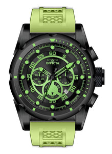 Band Material: Silicone, Band Tone: Light Green, Band Width: 26MM, Band Length: 215MM, Crown Type: Push, Case Material: Stainless Steel, Case Tone: Black, Case Size [mm]: 50, Case Back: Solid, Material of Hands: Metal, Color of Hands: Black,Luminous, Crystal Type: Mineral, Bezel Material: Stainless Steel, Dial Material: Metal, Dial Color: Black, Dial Pattern: Sun-ray Finish .Purchasing these parts and having a non-authorized repair center open your watch voids all manufacturing warranties. Invicta cannot guarantee the quality standards of an altered timepiece, the standard 3-year limited warranty on Invicta timepieces shall be invalid if the timepiece is serviced at any time by an unauthorized repair center. This includes battery replacements, which must be done at an Invicta authorized repair center in order to maintain the eligibility of the warranty. Please follow the link below to learn more about Invicta's warranty.https://cdn.invictawatch.com/www/files/invicta-warranty-2018.pdf