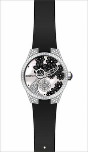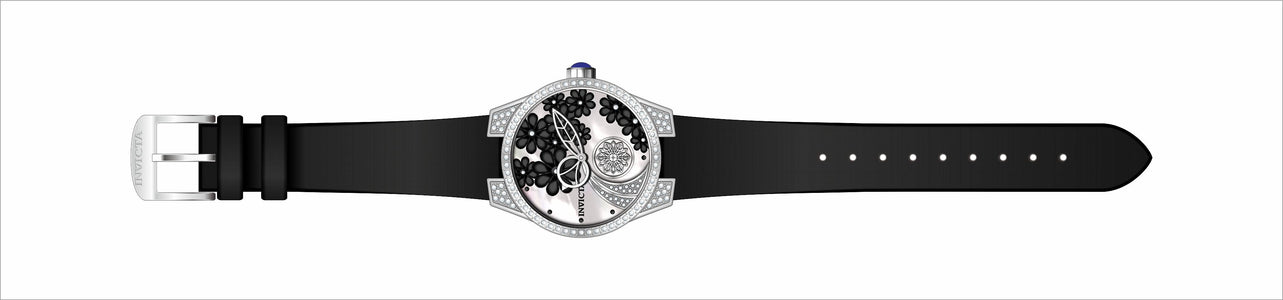 INVICTA Wildflower Lady 37.5mm Stainless Steel Steel White dial VD78 Quartz , Band Material: Satin, Band Tone: Black, Band Size [mm]: 20, Band Length [mm]: 190, Buckle Type: Buckle , Crown Type : Push, Case Material : Stainless Steel, Case Tone : Steel, Case Size (mm) : 37.5, Case Back : Solid, Material of Hands : Metal, Color of Hands : White,Silver, Crystal Type : Flame Fusion, Bezel Material : None, Dial Material : Mother of Pearl, Dial Color : White, Dial Pattern : None .Purchasing these parts and having a non-authorized repair center open your watch voids all manufacturing warranties. Invicta cannot guarantee the quality standards of an altered timepiece, the standard 3-year limited warranty on Invicta timepieces shall be invalid if the timepiece is serviced at any time by an unauthorized repair center. This includes battery replacements, which must be done at an Invicta authorized repair center in order to maintain the eligibility of the warranty. Please follow the link below to learn more about Invicta's warranty.https://cdn.invictawatch.com/www/files/invicta-warranty-2018.pdf
