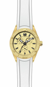 Band Material: Silicone, Band Tone: White, Band Width: 22MM, Band Length: 215MM, Crown Type: Push, Case Material: Stainless Steel, Case Tone: Gold, Case Size [mm]: 42, Case Back: Solid, Material of Hands: Metal, Color of Hands: Black,Luminous, Crystal Type: Mineral, Bezel Material: Stainless Steel, Dial Material: Metal, Dial Color: Gold, Dial Pattern: Textured .Purchasing these parts and having a non-authorized repair center open your watch voids all manufacturing warranties. Invicta cannot guarantee the quality standards of an altered timepiece, the standard 3-year limited warranty on Invicta timepieces shall be invalid if the timepiece is serviced at any time by an unauthorized repair center. This includes battery replacements, which must be done at an Invicta authorized repair center in order to maintain the eligibility of the warranty. Please follow the link below to learn more about Invicta's warranty.https://cdn.invictawatch.com/www/files/invicta-warranty-2018.pdf
